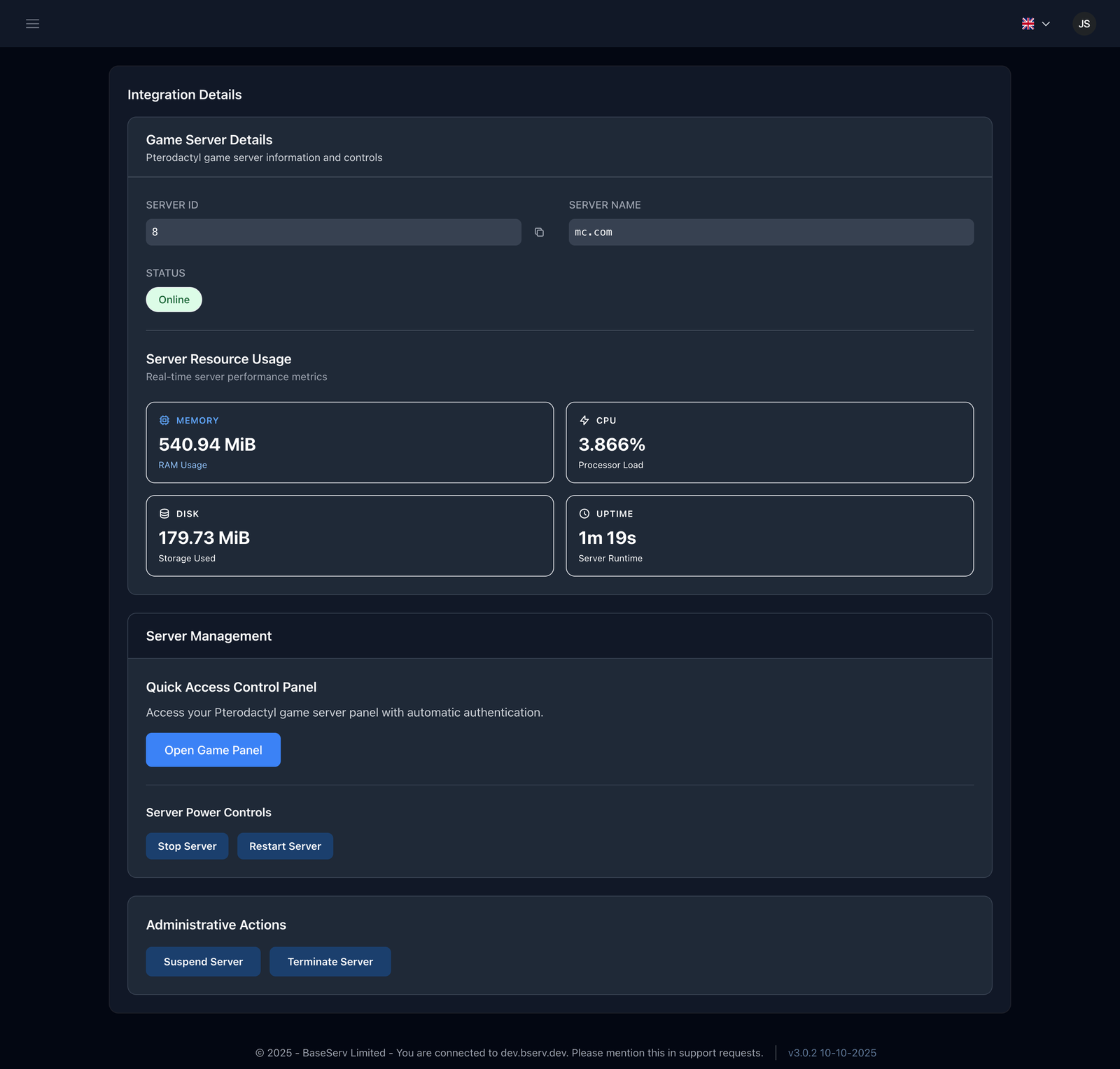 For years, Pterodactyl has been the preferred tool for efficiently and controllably managing game servers. BillingServ has aimed to simplify billing, subscriptions, and automation. By connecting the two systems, we’ve created a smooth process that removes the difficulty of using multiple systems.